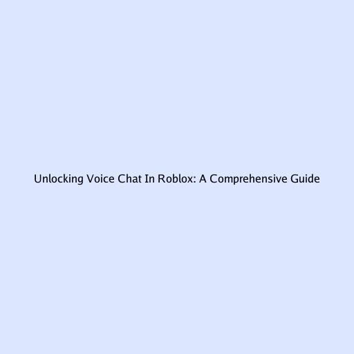 Unlocking Voice Chat in Roblox: A Comprehensive Guide