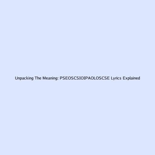 Unpacking The Meaning: PSEOSCSIOIPAOLOSCSE Lyrics Explained