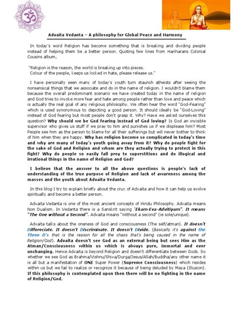 Vedanta Philosophy: A Guide to Inner Peace