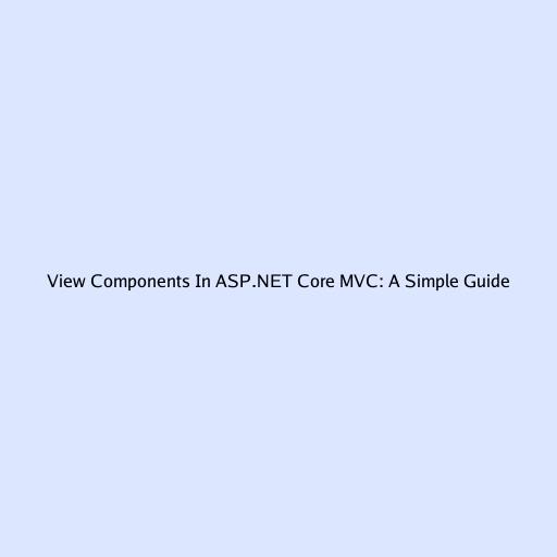 View Components in ASP.NET Core MVC: A Simple Guide