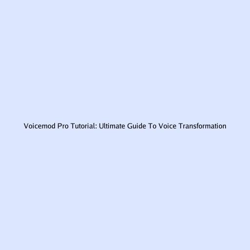 Voicemod Pro Tutorial: Ultimate Guide to Voice Transformation