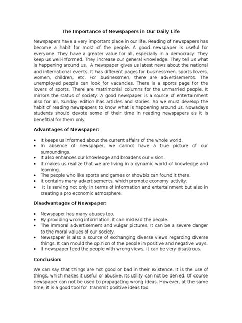 One of the biggest advantages of newspapers, especially established ones, is their credibility . These are organizations with editorial processes, fact-checkers, and a reputation to uphold. Unlike a random blog post or a viral social media thread, newspaper articles undergo scrutiny. This commitment to accuracy builds trust. When you read a story in a reputable newspaper, you have a higher degree of confidence that the information is reliable. This is super important because misinformation can spread like wildfire online. Having a trusted source like a newspaper helps you cut through the noise and get to the truth. The importance of newspaper in our daily life hinges on this trustworthiness, acting as a vital bulwark against the tide of fake news. In a world where anyone can publish anything, the editorial standards of newspapers provide a much-needed anchor for factual reporting. This reliability is essential for building a well-informed citizenry and maintaining a healthy democracy. It allows us to engage with complex issues with a solid foundation of facts, rather than being swayed by unsubstantiated claims.
