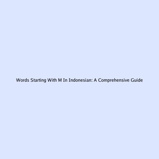 Words Starting With M In Indonesian: A Comprehensive Guide