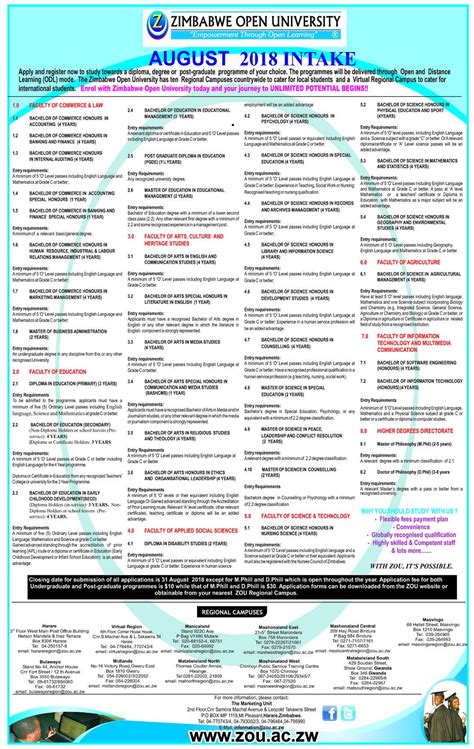One of the standout features of the Zimbabwe Open University is the sheer variety of programs it offers. Whether you’re interested in business, education, arts, or science, ZOU has something for everyone. Let’s take a closer look at some of the key areas of study.